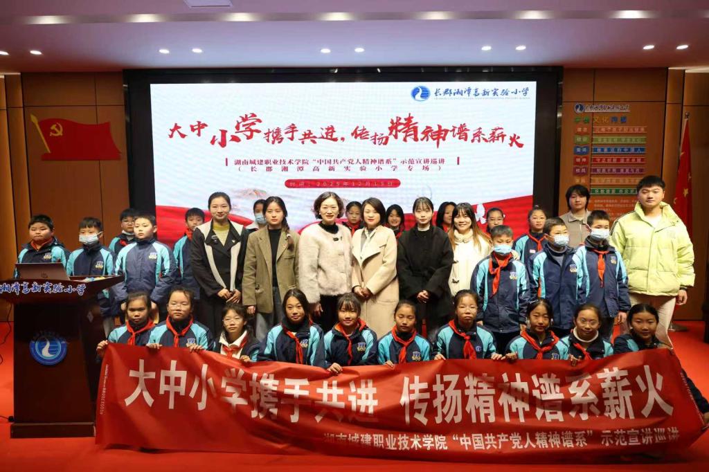 近日,为深入学习贯彻党的二十届四中全会精神,推动党的创新理论入脑入心,湖南城建职业技术学院马克思主义学院师生走进长郡湘潭高新实验小学,开展“大中小学携手共进,传扬精神谱系薪火”示范宣讲活动,深化大中小学思政课一体化建设,推动精神谱系教育贯穿育人全程。